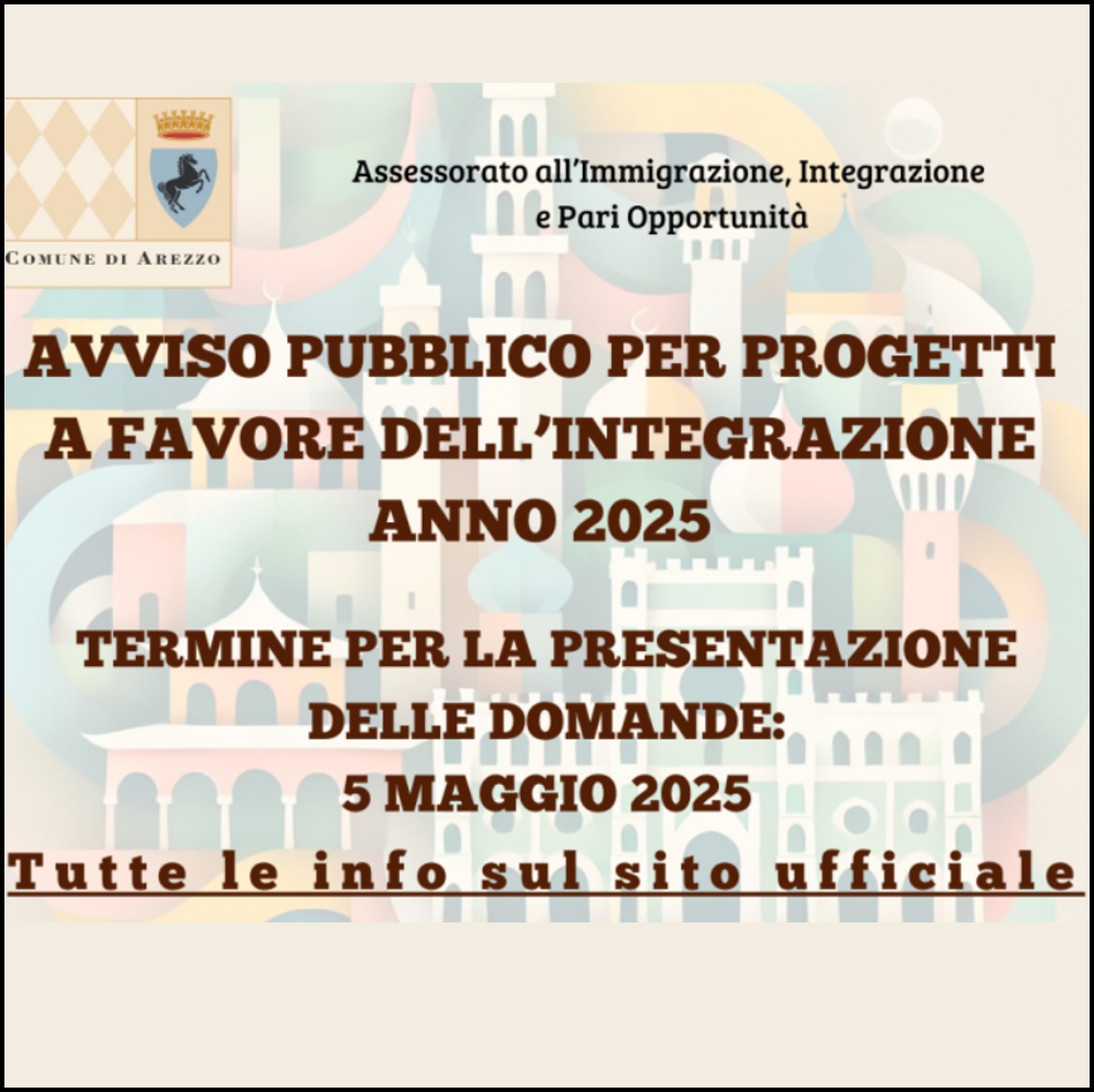 Il bando finanzia progetti di educazione civica, insegnamento della lingua italiana e attività culturali, sportive ed educative. Domande entro le ore 12 del 5 maggio 2025.